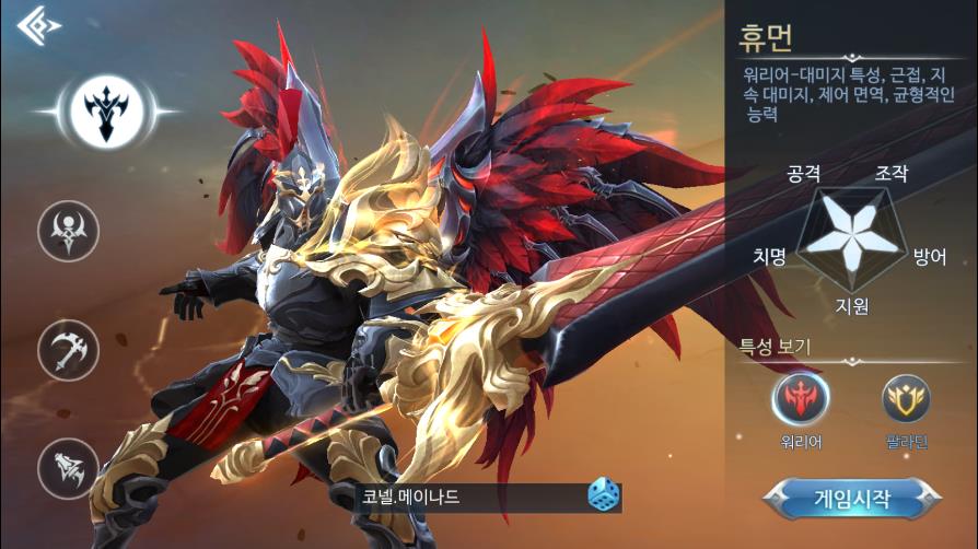 ▶워리어 : 전형적인 전사형 직업이다. 공방이 적절히 분배되어 있어서 조작하기도 무난한 스타일이다. 대검을 사용하며 주로 근접하여 적을 공격한다.